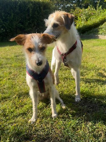 Clooney vom Gerhaldenbach, ein reinrassiger Kromfohrländer, ist wirklich ein Traumtyp: sportlicher Körperbau, süßes Gesicht und ein unglaublich charmanter Charakter. Als die beiden sich das erste Mal gegenüberstanden, war die Begeisterung auf beiden Seiten sofort spürbar.