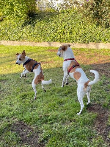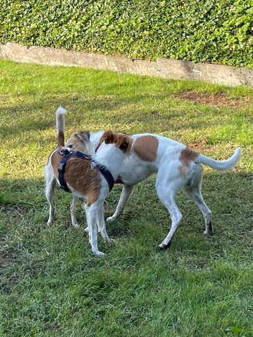 Da beide noch unerfahren waren, wurde erstmal viel gespielt. Coco fand es anfangs etwas seltsam, als Clooney versuchte, seine Pfoten auf ihren Rücken zu legen, und sprang immer wieder weg. Auch Clooney brauchte ein paar Anläufe, um herauszufinden, wie es richtig funktioniert. Aber nach mehreren spielerischen Versuchen wurde es mit jedem Mal besser – und schließlich hat es geklappt.